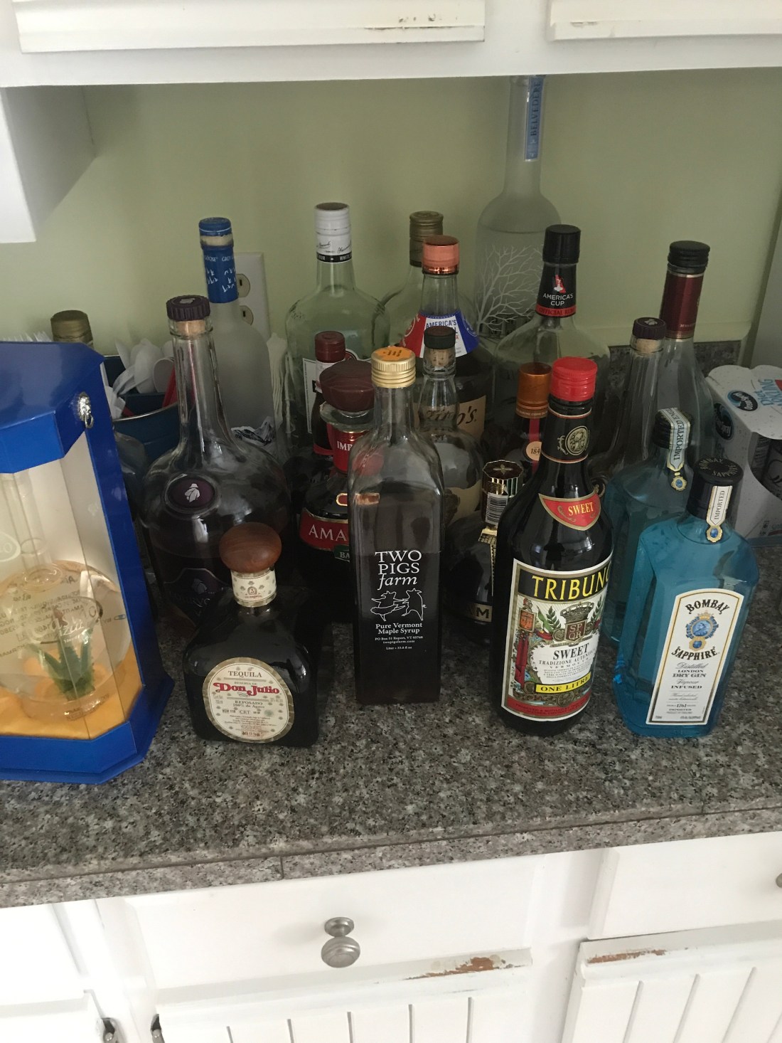 Being alone, I did not give into temptation and let the bottles be. The dark Jamaican rum and ginger beer was particularly enticing. If I had some lime, I don’t think I could have resisted. Instead, I mowed their lawn as a thank you. Busy hands and all that.